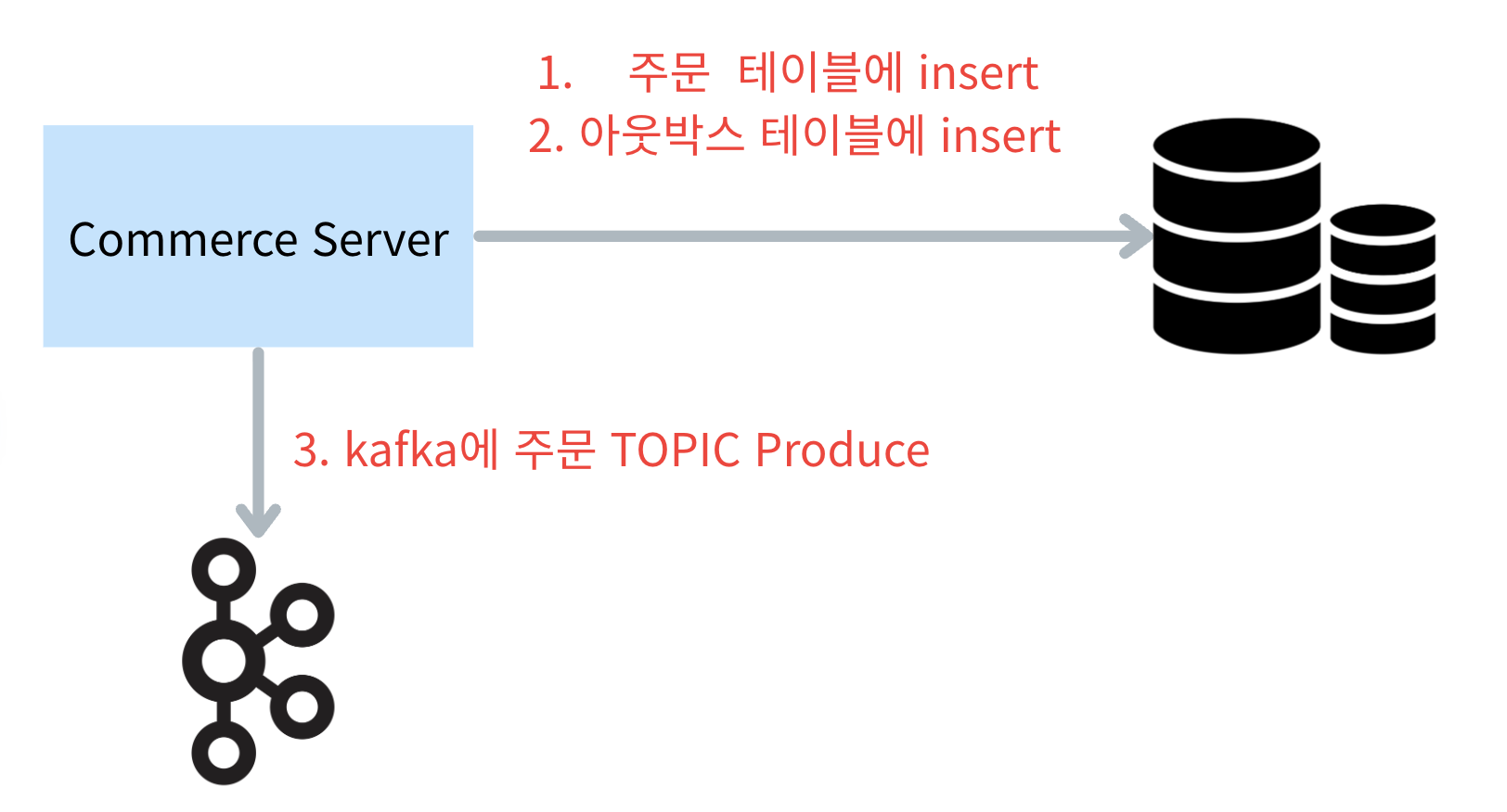 하지만 위 프로세스를 수행하던 도중 네트워크 문제로 주문 TOPIC을 발행하지 못하거나 소비하지 못한다면 어떻게 될까?